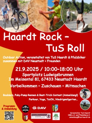 Ziel ist es, die neue Gestaltung des Platzes und natürlich auch die Vereine TuS Haardt und Pfalzbiker zu bewerben. Wir freuen uns auch, dass Freunde vom DAV Neustadt mit dabei sind und ausserdem noch die „Waldschenke" für Essen und Getränke sorgt.